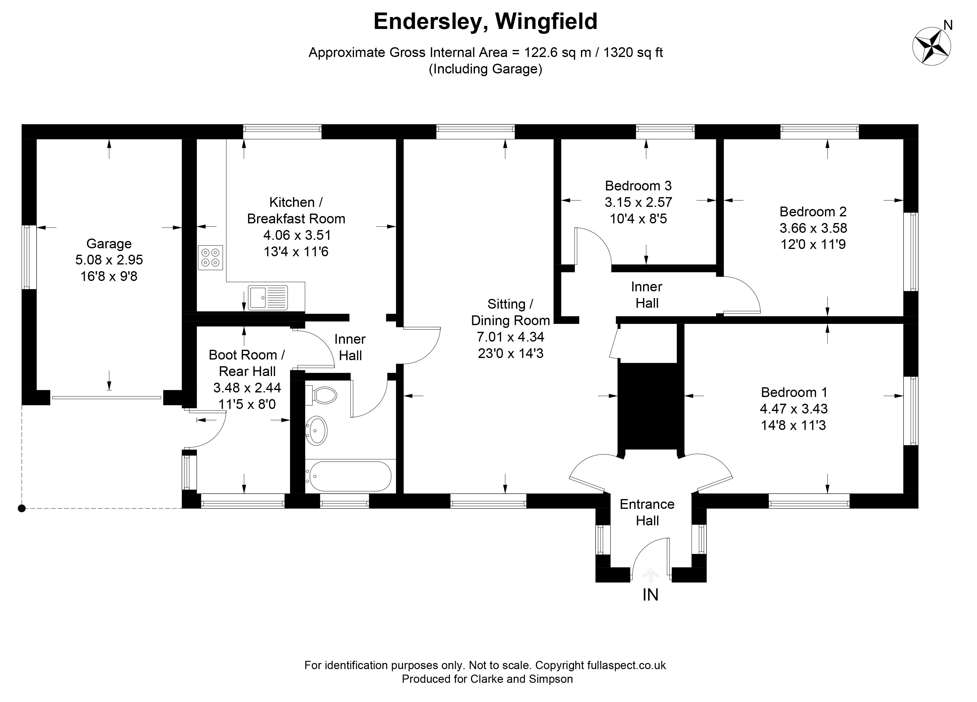 Endersley will be found along Church Road; a quiet country lane a short distance from the centre of Wingfield. The property is approached via a concrete driveway that is sufficiently large enough to park two to three vehicles, and this leads to the single garage, approximately 16’8 x 9’.