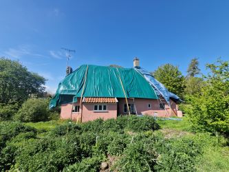The Old Parsonage requires a complete programme of renovation and refurbishment, both internally and externally, which will breath new life into this impressive historic building. This could potentially include the reconfiguring of the first floor accommodation, in particular the large landing area to include a bathroom/shower room to the bedrooms, subject to the necessary consents. Due to the poor condition of the thatch (see photo taken Summer 2023), which was allowing water ingress, the vendors have covered the roof with a tarpaulin. In August 2023 a quotation for the replacement of the sole plate and render was obtained, a copy of which is available on request.