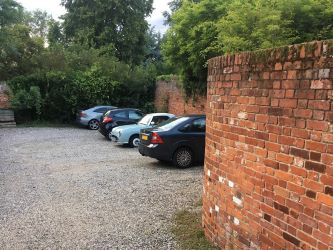 The property includes two designated parking spaces at the far end of the courtyard, providing secure and convenient off-road parking.