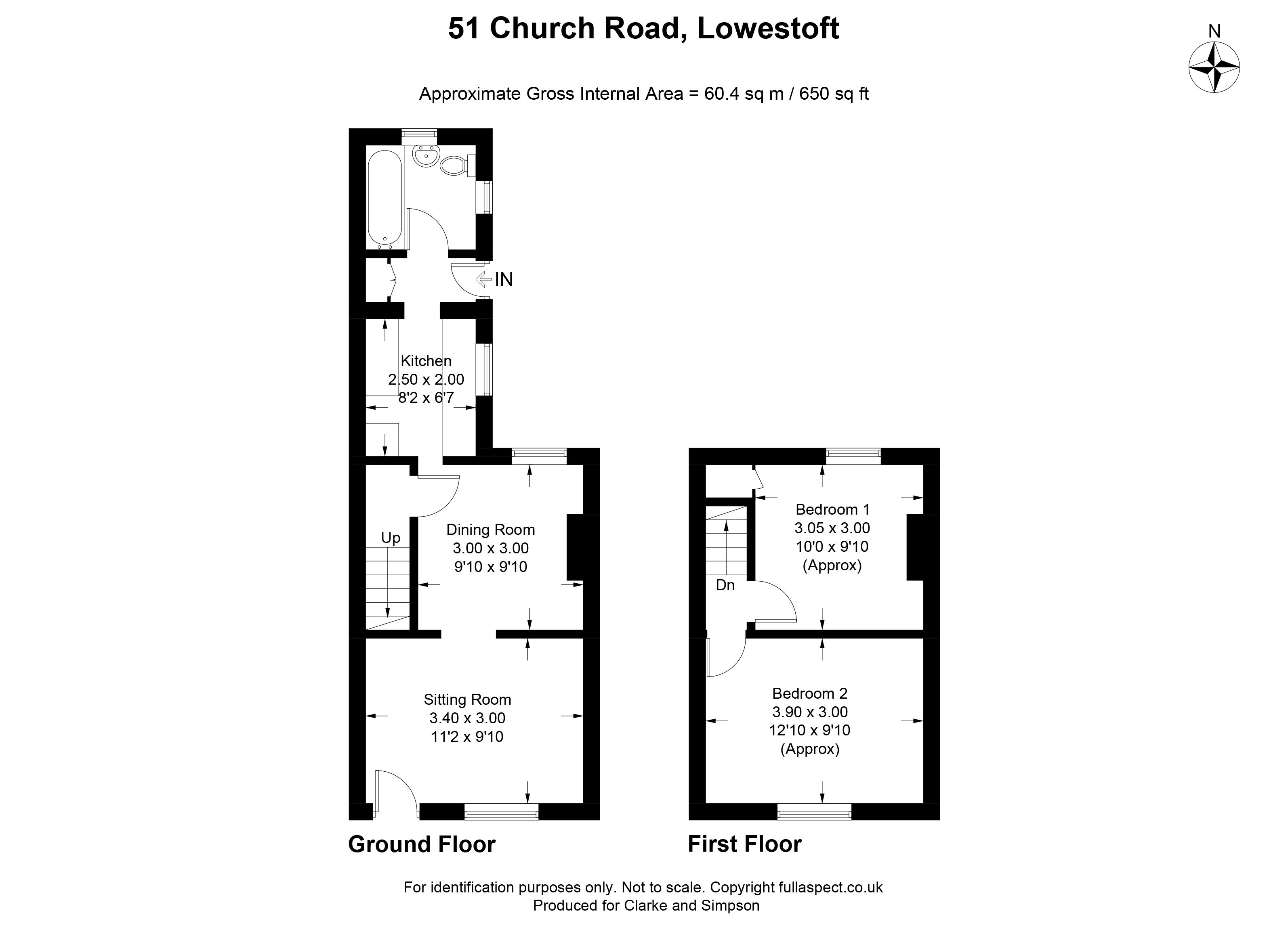 Sitting room, dining room, kitchen, ground floor bathroom. Two first floor bedrooms. Garden to rear. On-street parking.