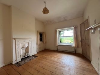 A front door leads to a hallway off which is a triple aspect sitting room overlooking the rear garden and with field views to the front. There is an open fireplace. Also off the hallway there is the kitchen/dining room. The dining room has a window to the front and opens to the kitchen where there are fitted units and space for an electric oven and washing machine. It overlooks the rear garden. A door opens to a rear hallway off which is a basic utility room and cloakroom and access to the rear garden.