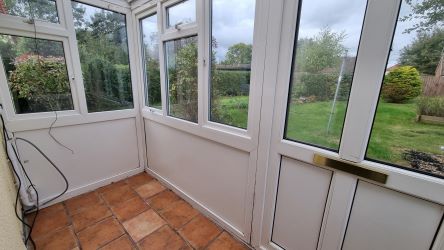 Entrance hall, sitting room, family/dining room, kitchen/breakfast room, and lean-to conservatory. Three first floor bedrooms and a family bathroom. Generous garden to front and rear. Off-road parking for four to six vehicles.