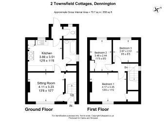 From Framlingham take the B1116 Dennington road and at the T-junction with the A1120 turn right and then immediately left back on the B1116. Number 2 Townsfield Cottages will be found on the left hand side, immediate opposite the primary school.