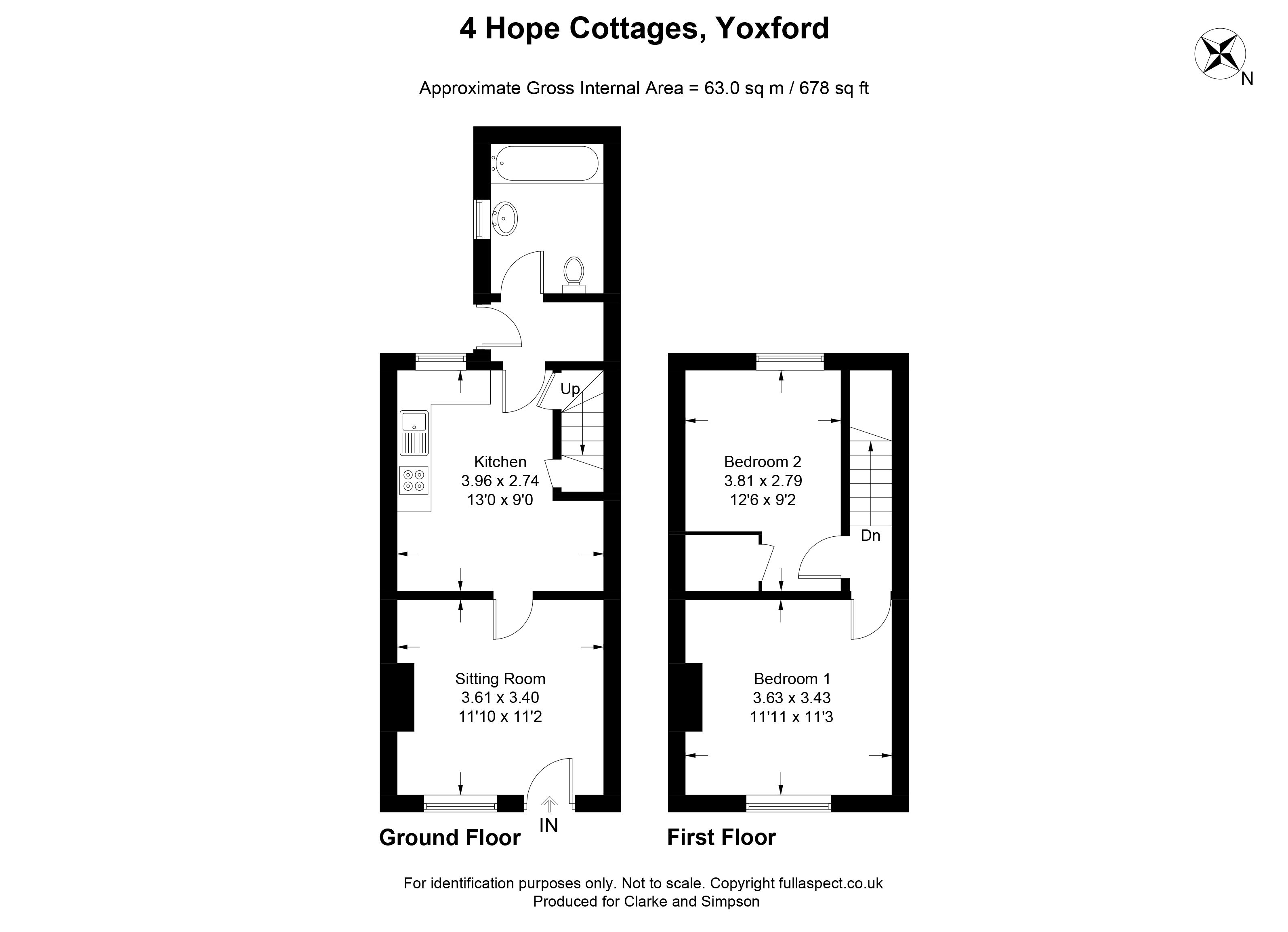 Sitting room, kitchen/dining room, ground floor bathroom. Two first floor double bedrooms. Enclosed garden to rear. On-street parking.