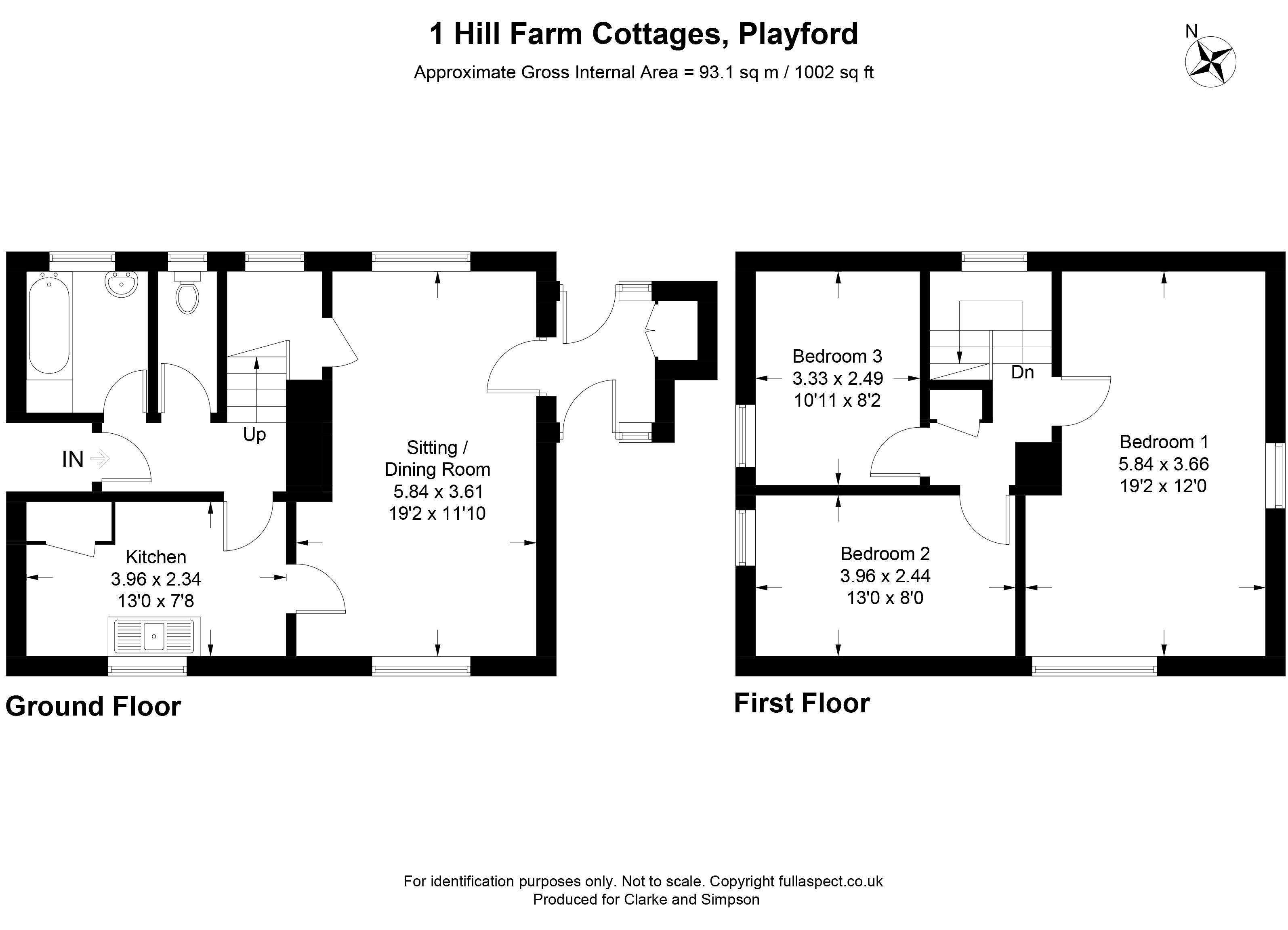 1 Hill Farm Cottages is believed to date from the 1960s or 1970s and is of predominantly brick construction under a concrete tiled roof. The property is linked via the ground floor only to Number 2 by the front hallway. On the ground floor is a kitchen, sitting/dining room, bathroom and cloakroom. On the first floor are three bedrooms. Much of the house has UPVC double-glazed windows. The house has front and rear gardens.