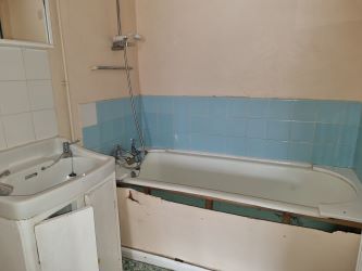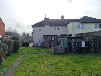 9 Rouse Hall Estate is a three bedroom semi-detached former local authority house with brick and colour washed elevations under a pitch tiled roof and is now in need of modernisation. A side door leads to the entrance hallway with doors off to a sitting room with tiled fireplace and window to side and another door to the dining room. A larger room with window to front and wall mounted radiator. A tiled fireplace and hearth and built-in storage cupboards - one with shelving and one with hanging rail with cupboards above for meters. From here there is a door to the kitchen with obscure window to side and window to rear. Matching range of fitted wall and base units with a stainless steel single drainer sink and tiled splashback to roll top worksurfaces. Space for appliances and space for electric cooker and breakfast bar. Wall mounted radiator. A further door leads from the sitting room to the ground floor bathroom with a panel bath with tile surround and wall hung basin with cupboard under and tiled splashbacks, wall mounted radiator and extractor fan. The rear hall has a wall mounted radiator and partially glazed door to the garden. From here there is a door to the downstairs cloakroom with a low-level WC and obscured window to the rear. From the entrance hall the stairs raise to first floor landing where there is a window to the front and doors off to bedroom one with windows to side and rear, a tiled fireplace, wall mounted radiator and airing cupboard housing the water tank and a hanging rail. Bedroom two is a double bedroom with window to rear and wall mounted radiator. Bedroom three is a single bedroom with a window to front and wall mounted radiator.