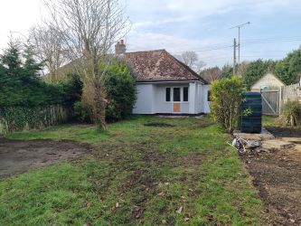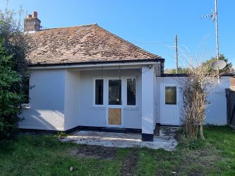 10 Church Road Dallinghoo, is a brick built, two bedroom, semi-detached former local authority house built circa 1950 with rendered elevations under a pitched tiled roof. Whilst the accommodation is well laid out, it is now in need of some modernisation and refurbishment throughout. The entrance hall has a door off to the kitchen, which has windows to front and side, matching range of fitted wall and base units, stainless steel single drainer sink unit with mixed taps over and tiled splashbacks to roll top worksurfaces. There is space for an electric cooker and space for appliances together with a wall mounted radiator. A door leads to the sitting room, again with windows to side and rear and partially glazed door to the garden with a covered veranda and hardstanding beyond. The sitting room has an opening into the inner hall where there is a further radiator, access to the loft and doors off to the bedrooms. Bedroom one is a double bedroom with a window to rear, wall mounted radiator and two open fronted cupboards with shelves and cupboards above. Bedroom two has a window to the front and a wall mounted radiator. The family bathroom comprises a panel bath in tiled surround with mixer tap over and electric shower over with shower screen, low-level WC and pedestal handwash basin with tiled splashback. There is an obscured window to front, extractor fan and wall mounted radiator. The property benefits from UPVC double glazing throughout and oil-fired central heating.