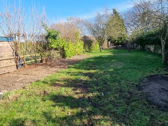 The property is approached from the highway via an unmade driveway providing off-road parking for two vehicles and with potential for more. The enclosed front garden is mainly laid to lawn and bounded by hedging. There is a double gated access to the side. The garden extends to in excess of 100ft and is mainly laid to lawn with established laurel hedging and fencing, shrubs and fruit trees. The garden abutts fields to the rear.
