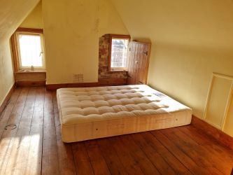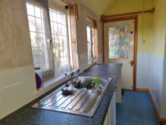 6 The Haven forms part of a terrace of cottages dating from 1908. They are of brick construction under a tiled roof. The accommodation comprises sitting/dining room, kitchen, a ground floor bathroom and first floor bedroom. To the front of the property is a south facing garden. Whilst the cottage has UVPC double glazed windows and night storage heaters, it does require complete renovation and modernisation internally. There is a covered porch to front with front door to the sitting room with window to front, a night storage heater, a built in airing cupboard with pre-lagged water cylinder and shelving and an opening to a galley kitchen. This has two windows to rear, partially glazed door to rear access and rear store. A range of fitted base units and stainless steel single drainer sink unit with taps above and tiled splashbacks to roll top worksurfaces. Space for appliances and night storage heater. A door from the sitting room to the inner lobby where there is a further door to the ground floor bathroom with panel bath, basin, low-level WC, obscure window to front and part tiled walls. A further door from the sitting room leads to the stairwell with a Velux to rear and opens into a large double bedroom at the top with two windows to side, built-in eaves storage and exposed floorboards.