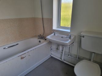 55 Eastward Ho is a three bedroom, semi-detached former local authority house built circa 1945, of non-standard Orlit construction. The property has well laid out accommodation over two floors and comprises an entrance hall, with window to the side and stairs that rise to the first floor landing with understairs storage. Doors lead off to the sitting room, with windows to the front, wall mounted radiator and a door that leads through to the dining room. This has a window to the rear, wall mounted radiator and laminate style flooring. From the entrance hall there is a further door that leads to the kitchen, with window to the rear and door to the garden. There are a matching range of fitted wall and base units, a stainless steel single drainer sink unit with taps above and tiled splashbacks to roll top worksurfaces. There is space for an electric or gas cooker and appliances, a wall mounted radiator, extractor fan, wall mounted Vaillant gas-fired boiler and built-in meter cupboard.