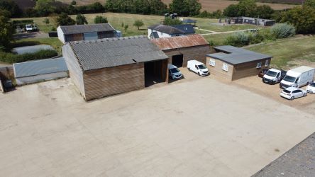 The property consists of a traditional timber framed Suffolk Barn with adjoining covered barns. There is a further building and adjoining temporary accommodation.