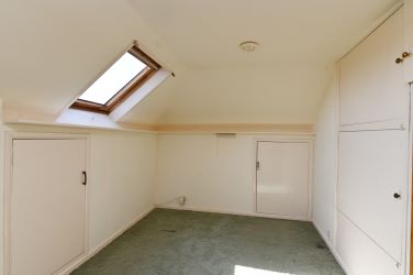 The first floor landing has a window to the rear of the property and doors off to the two first floor bedrooms. One is a good size double with window to the rear, handwash basin, built-in wardrobe and eaves store. The other first floor bedroom is a good size single or smaller double with window to the rear of the property and additional Velux window. This has built-in cupboards, eaves storage and a cupboard housing the cold water tanks.