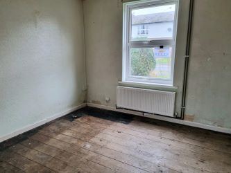 The accommodation is well laid out over two floors and is now in need of full renovation and refurbishment. A front door leads into an entrance hall with stairs that rise to the first floor landing. There is a door off to the sitting/dining room with windows to the front and rear and also doors to the downstairs cloakroom with low-level WC and wall hung basin. There is an opening from the hall to the kitchen. The kitchen has windows to the side and rear, a range of fitted wall and base units and a stainless steel single drainer sink unit with tiled splashbacks to roll top worksurfaces. There is also a walk-in pantry. There is a door to a covered walkway to the side of the property which has a window to the side and doors to the front and rear. On the first floor landing is a window to the front and a built-in cupboard and doors off to bedroom one. This is a double room with built-in airing cupboard with pressurised water cylinder, and window to the rear. Bedroom two is a further double bedroom with two windows to the front. Bedroom three is a good size single room with window to the rear. There is also a wet room on the first floor with obscured window to the side, low-level WC and electric shower over, wall hung basin, tiled splashbacks and wall mounted radiator.