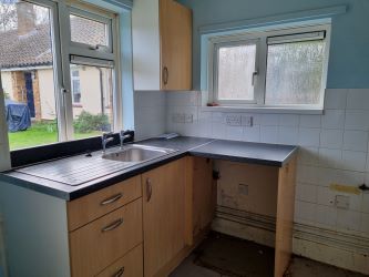 10 Mill Close is a former one-bedroom, end-of-terrace local authority bungalow, pleasantly positioned within a quiet cul-de-sac in the town of Felixstowe. A pathway leads to the front door, which opens into the hallway. From here, a door opens into the sitting/dining room, featuring a window overlooking the rear garden. This room also includes a built-in storage cupboard and a further door that leads to an outside covered walkway, providing convenient access to the rear garden. The kitchen enjoys natural light from windows to both the front and side elevations. It is fitted with matching high- and low-level cabinets, along with an inset stainless-steel sink. There is space for an electric/gas cooker, as well as space and plumbing for a washing machine. Access to the loft is available via a hatch in this room. The bedroom overlooks the rear garden and benefits from a built-in wardrobe. The wet room includes an obscured glazed window to the front and is fitted with a wall-mounted electric shower unit with tiled surround, wet-proof flooring, a WC, and a hand wash basin.