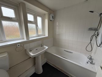 Stairs rise to the first floor landing which provides access to the loft. Bedroom one is a generous double with windows to the front of the property. Bedroom two is a further double room with windows to the rear and a built-in cupboard housing the boiler and hot water cylinder. Bedroom three is a single room with a window to the front and benefits from a built-in wardrobe. The bathroom has obscured glazed windows to the rear and comprises a panel bath with tiled surround and shower attachment over, WC, extractor fan and handwash basin.