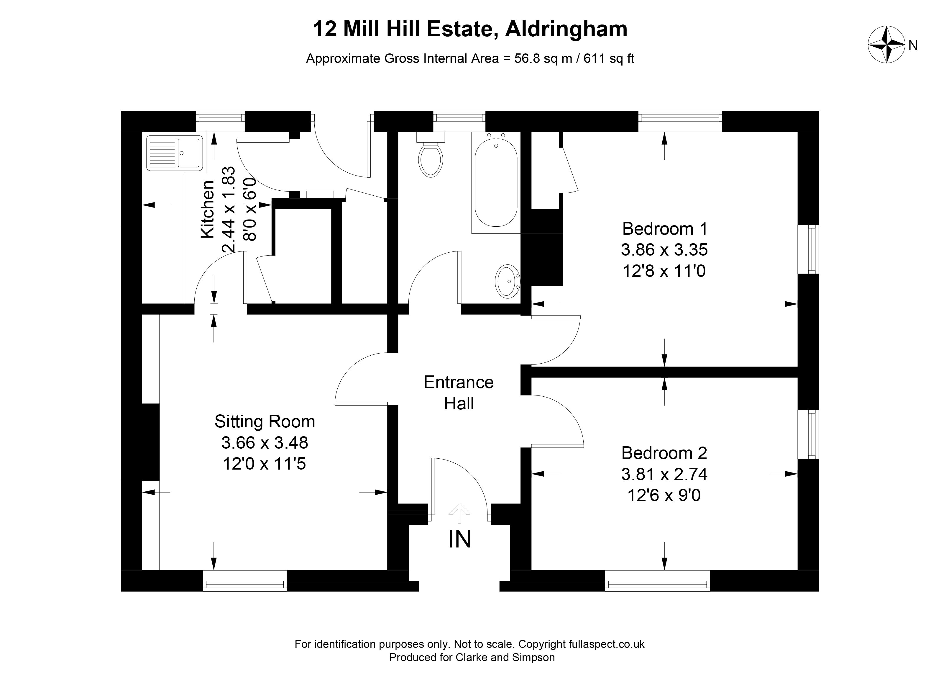 Entrance hall, sitting room and kitchen. Two double bedrooms and bathroom. Enclosed gardens to front and rear. Off-road parking on a first come first served basis. No forward chain.
