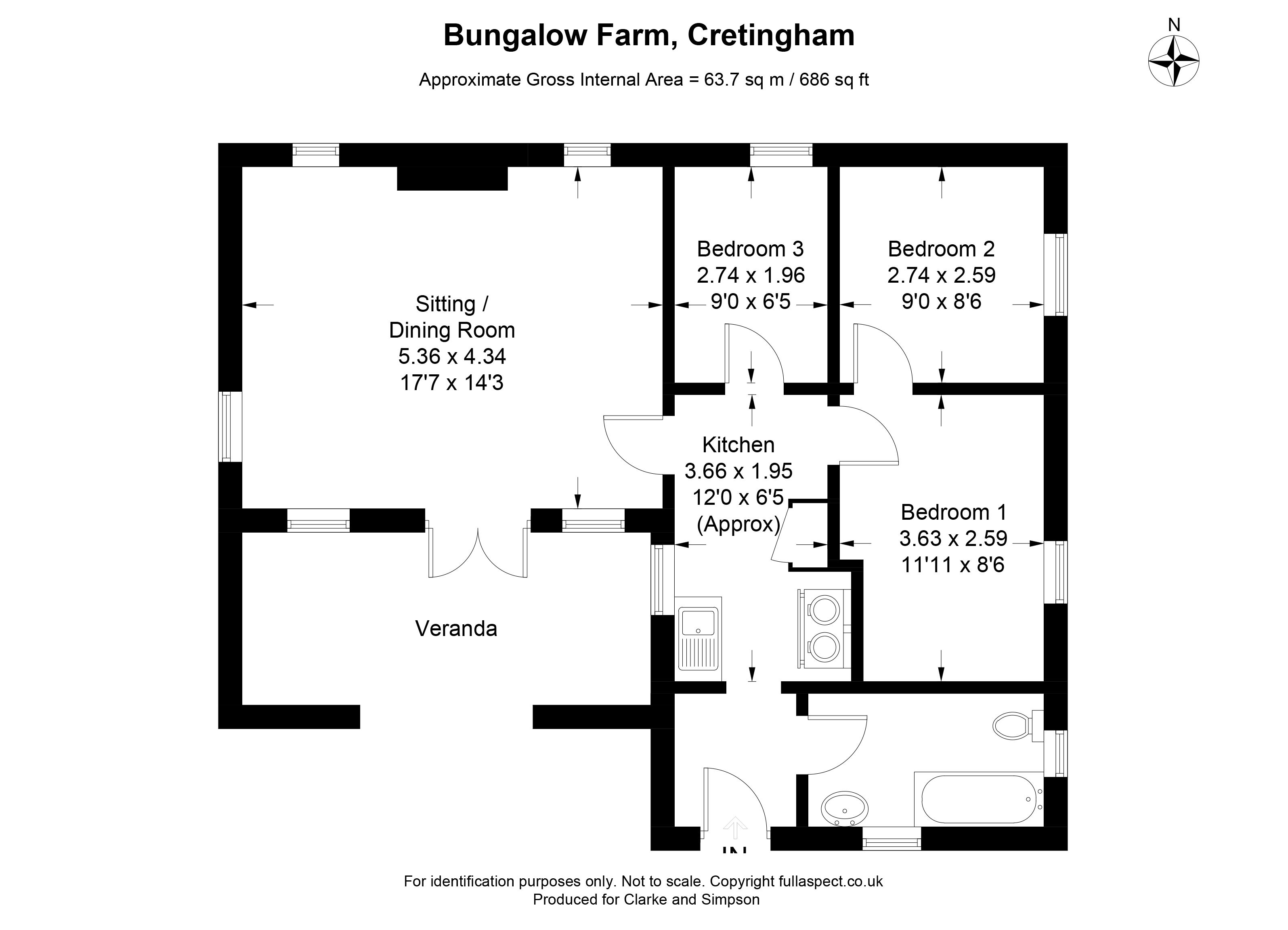 A door to the rear of the bungalow provides access to the hallway which opens to the kitchen and