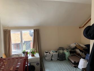 9' x 8' (2.74m x 2.44m) South facing window. Radiator. Door opens to the