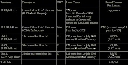 The premises comprises the freehold interest in a prominent Victorian building in the centre of this popular market town, that is subject to five long leasehold interests. Two of those long leasehold interests comprise the commercial/retail premises on the ground floor, which have been sold off to unconnected parties. The three long leasehold interests comprising the apartments are owned by one of the vendors/owners of the freehold and have been let on assured shorthold tenancies. The new freehold owner of the premises will own and control the apartment leasehold interests, which can simply be surrendered (merged with the freehold) without the need to involve any third parties. In all, the premises generates a total gross income of £15,460 per annum.
