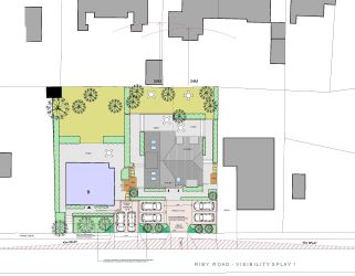 The plans provide for two new, separate entrances; one serving 9 Riby Road with the other serving the proposed new dwellings with respective parking and turning areas. To the rear there will be landscaped gardens as required.