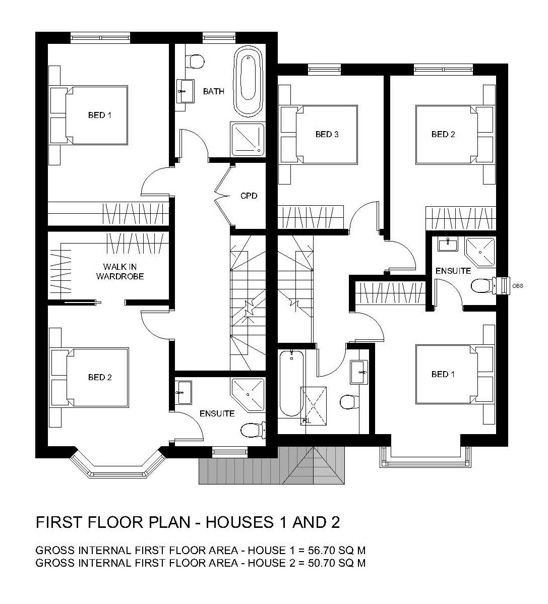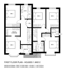 The site also benefits from planning permission for the construction of a pair of substantial semi-detached houses. The proposed houses are similar in design and each with a spacious entrance hall, living room, kitchen/dining room, utility room and cloakroom on the ground floor. On the first floor Plot 1 offers a master bedroom with walk-in wardrobe and en-suite shower room, guest double bedroom and bathroom, together with two further double bedrooms and a bathroom on the second floor. Plot 2 offers a master bedroom with en-suite shower room, two further double bedrooms and a bathroom on the first floor.